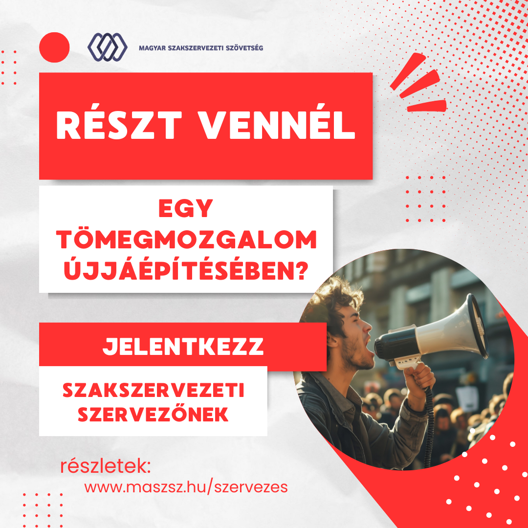 * A Magyar Szakszervezeti Szövetség és tagszervezetei főállású szakszervezeti szervezőket keresnek az élelmiszeriparban, a kereskedelemben, a feldolgozóiparban, valamint a településgazdálkodás és a vasúti közlekedés területén.