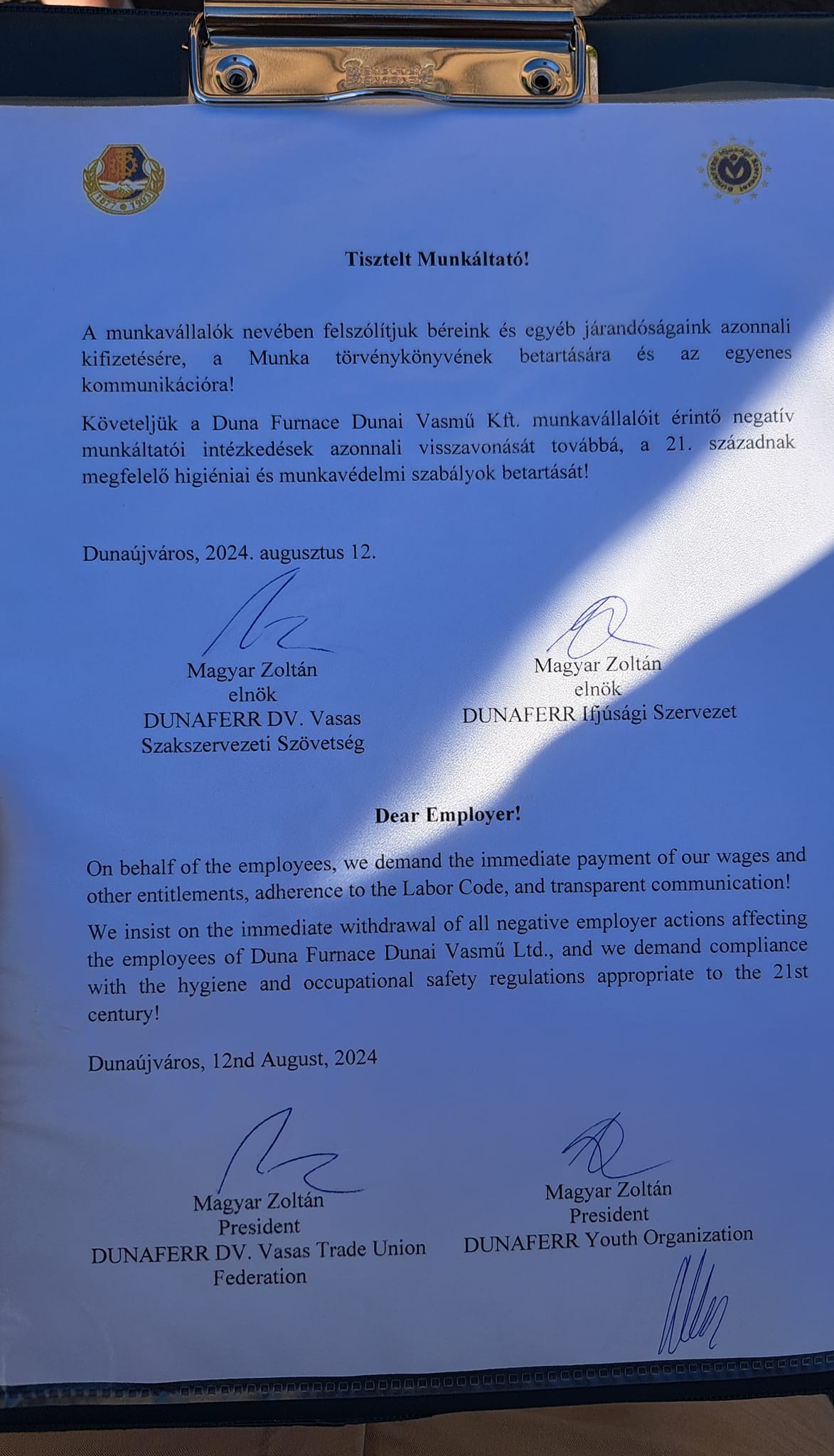 Nincs fizetés továbbra sem a volt Dunaferrnél (Liberty Dunaújváros)!!!Kedvezményes jegy az Operettszínházba