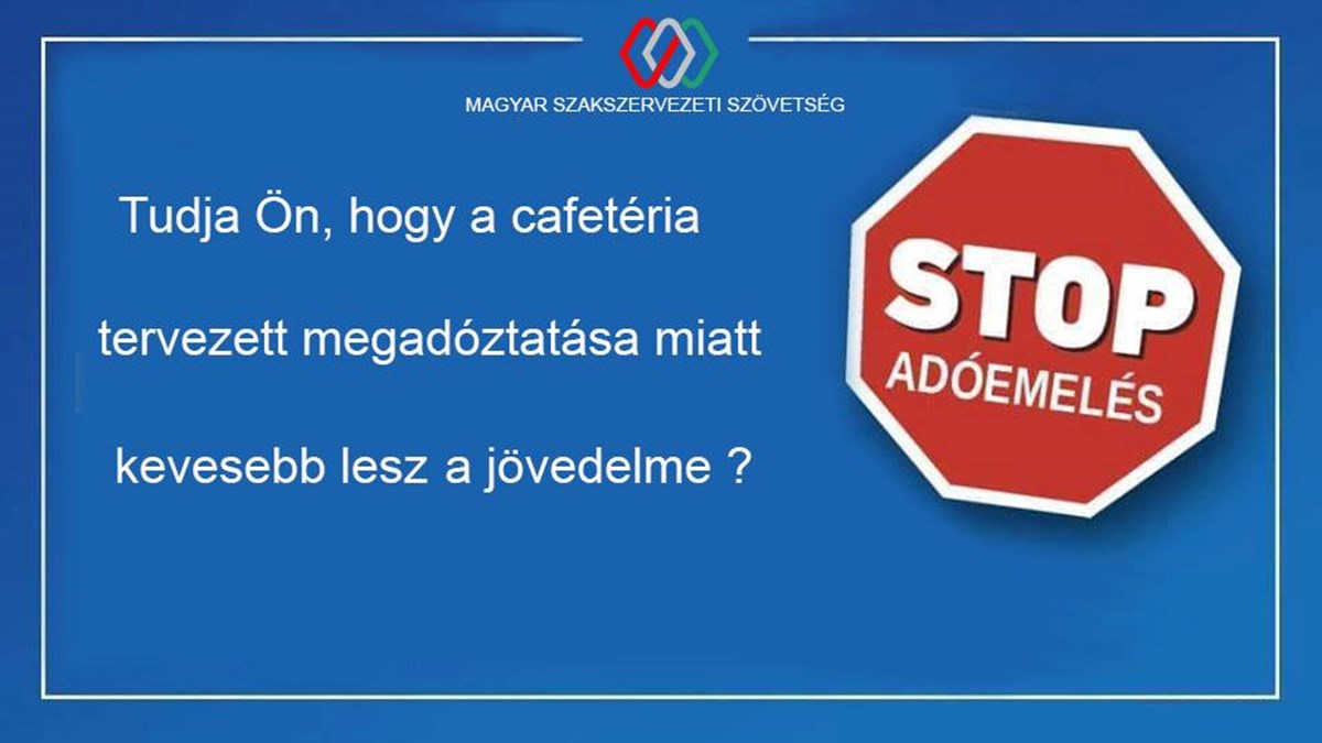 Nyílt levelet küldött minden országgyűlési képviselőnek a Magyar Szakszervezeti Szövetség (MaSZSZ), amelyben azt kéri, ne szavazzák meg a cafeteria adóztatásának tervezett változtatását. Kordás László, a szövetség elnöke kedden Salgótarjánban sajtótájékoztatón ismertette: miután a kormány nem fogadta el javaslatcsomagukat, a törvényalkotási bizottság ülésén pedig nem kapott szót, így szeretnék meggyőzni a pénteki végszavazás előtt a döntéshozókat.